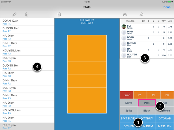 1. List of players in the drill 2. Actions and results 3. Stats summary 4. List of events