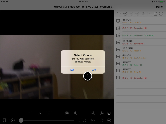 The app automatically replaces the match video reference to the merged video but does not erase the original segmented videos.