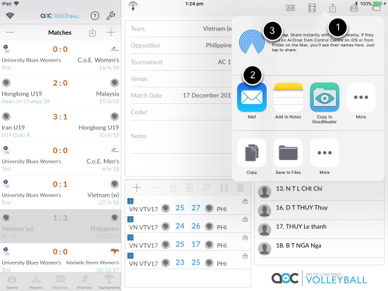 3. Tap AirDrop to share to another iPad with AOC VBStats running