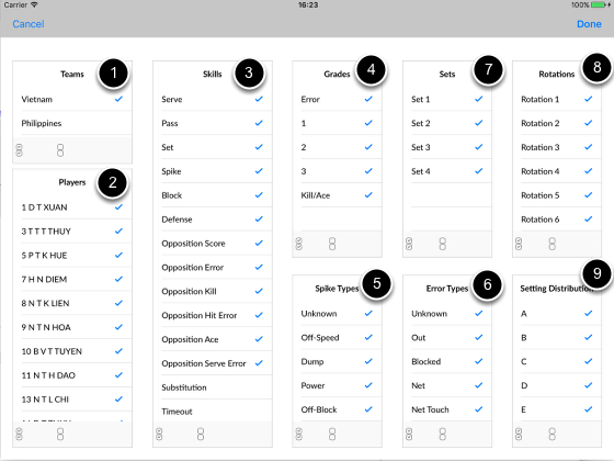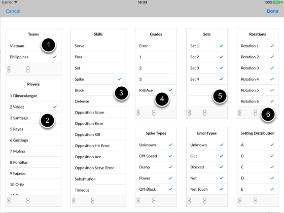 4. Select 1, 2, 3 as we are only interested in their sideouts. Could possibly remove 1 if you only want to see their in-system plays