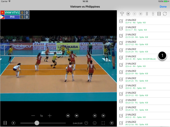 1. Events list only shows Vietnam's serve receives in rotation 1