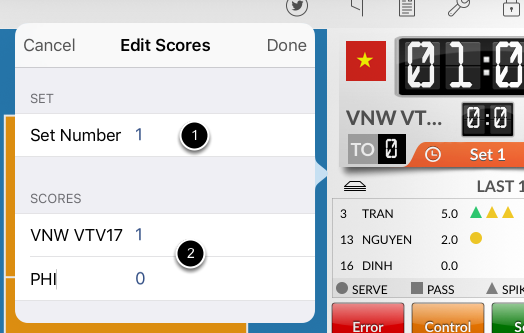 1. Modify set number 2. Modify set scores
