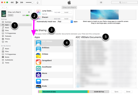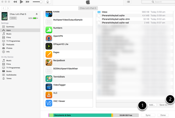 File Sharing via iTunes is used to import videos and PSVB files to the app Documents folder.